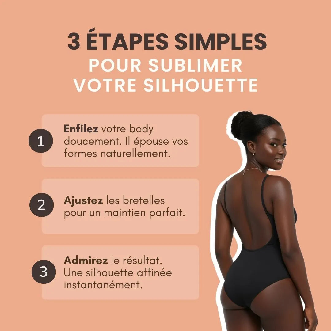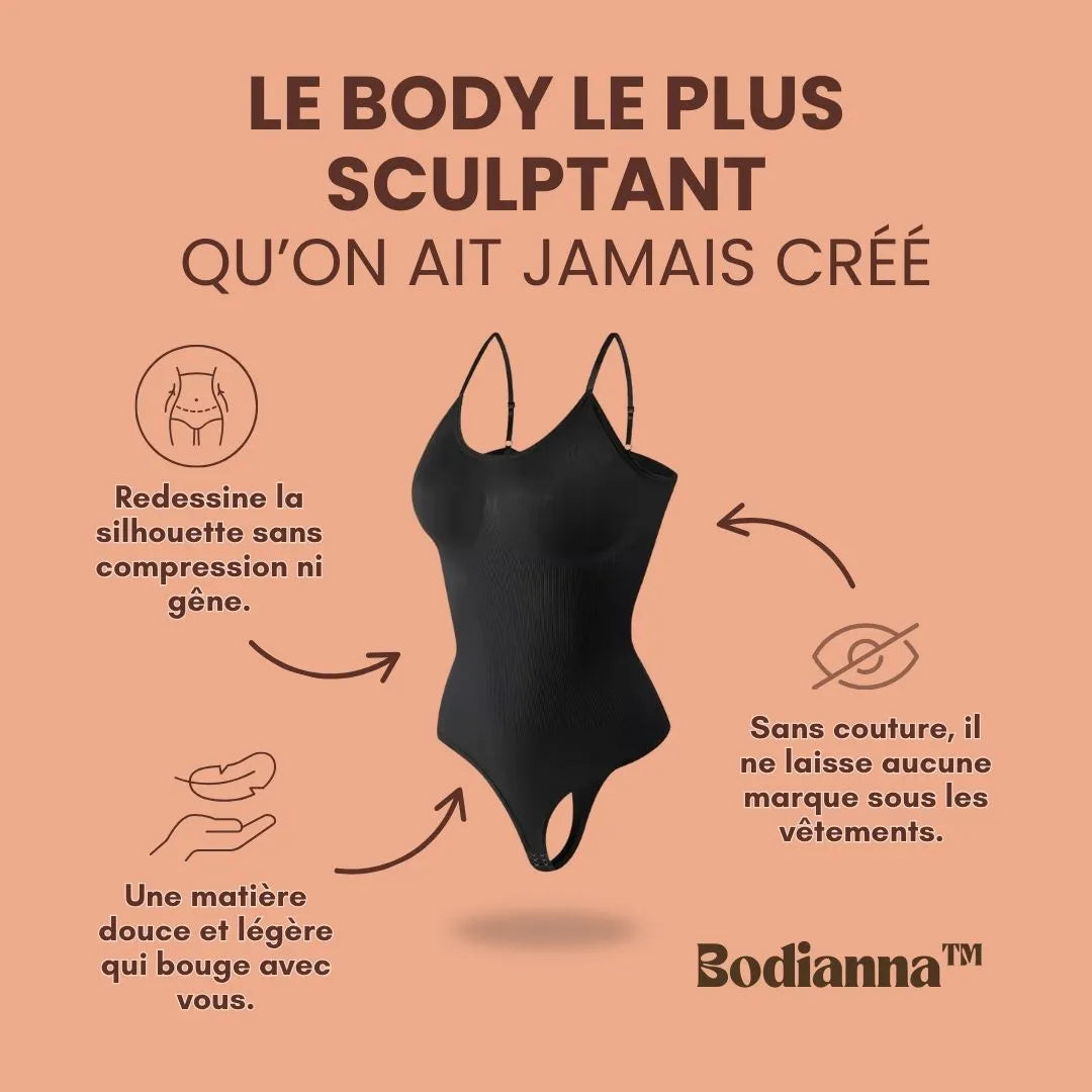 Le Body Bodianna™ est conçu avec une technologie de compression intelligente : il affine ta taille sans jamais t’étouffer.